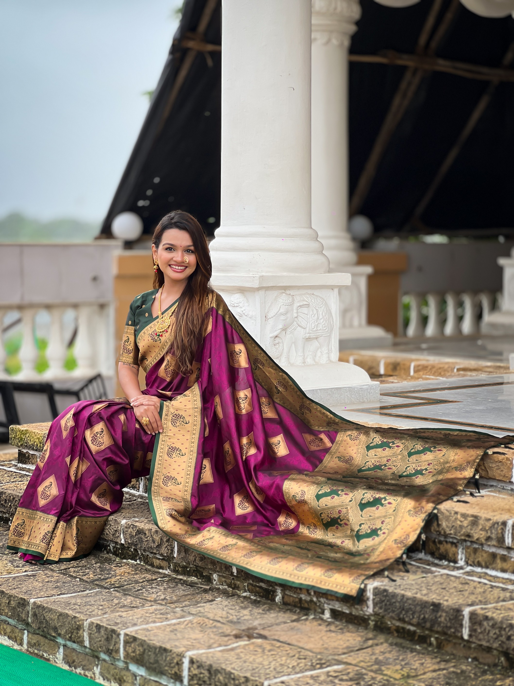 Wine Color Beautiful Woven Designer Meenakari Banarasi Silk Saree
