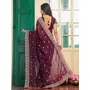 Wine Color Designer Chiffon Fabric Saree For Ceremonial Looks