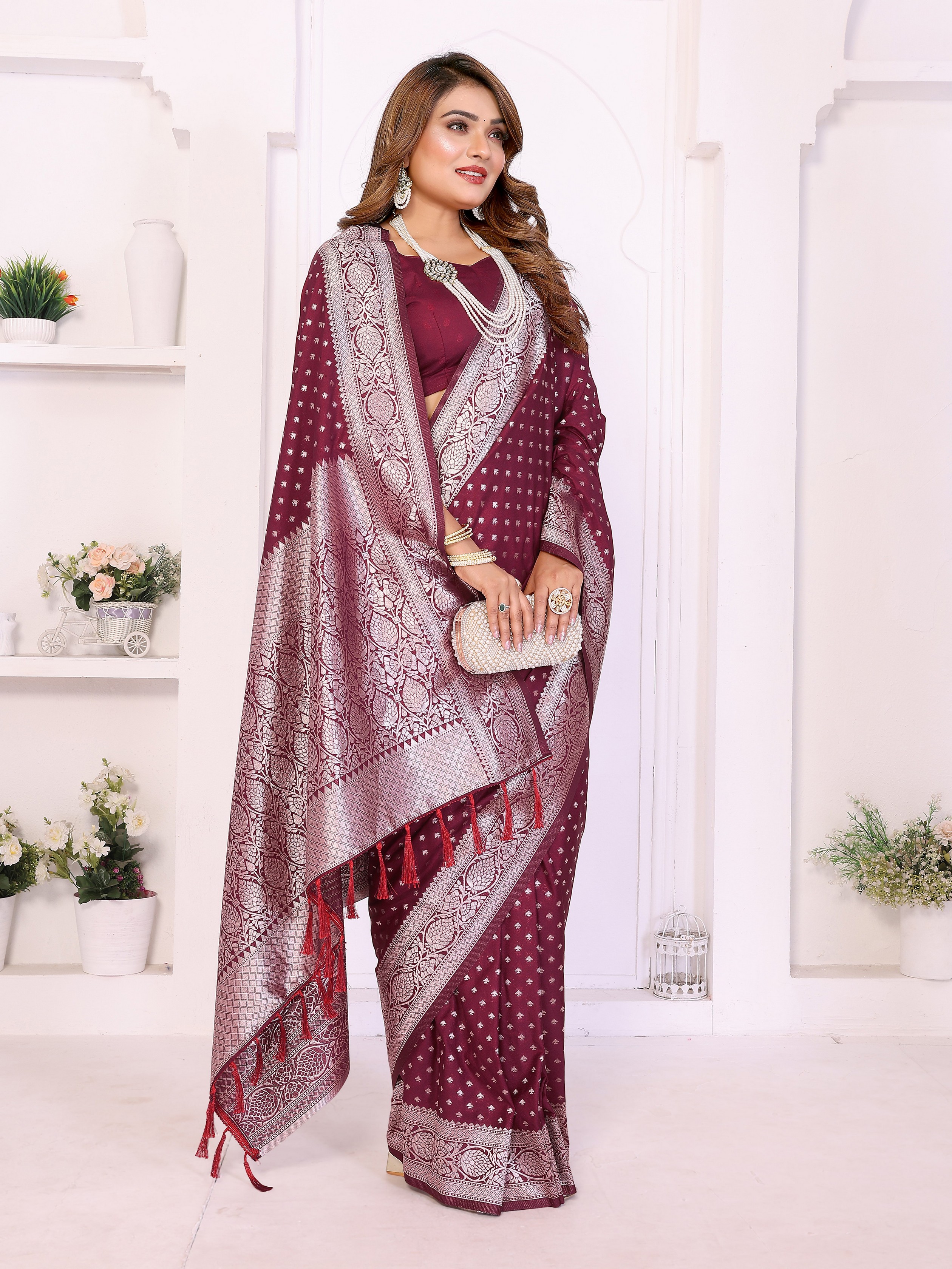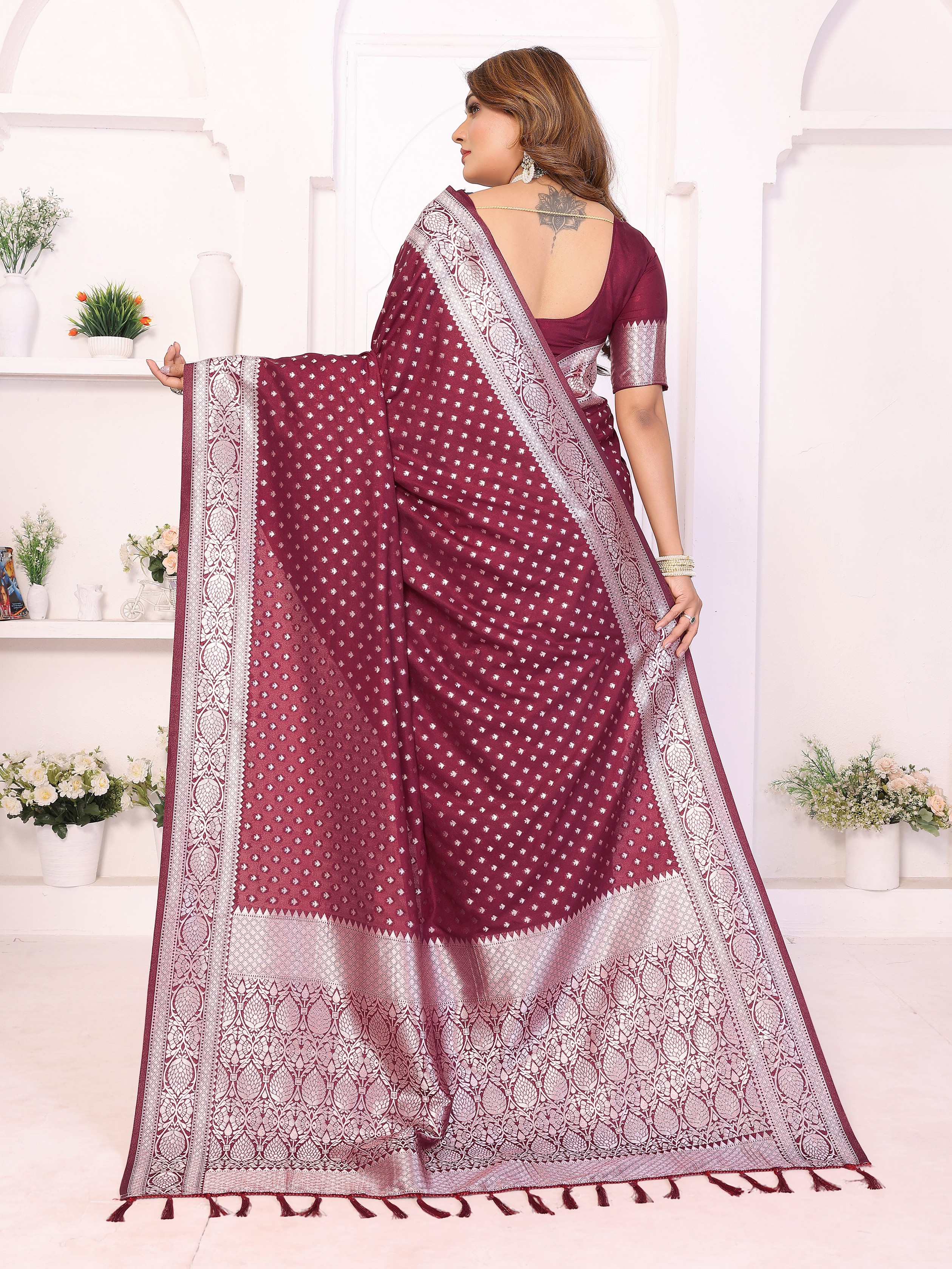 Wine Color Georgette Fabric Woven Rich Jari Butty Designer Traditional Ceremonial Saree