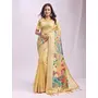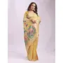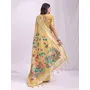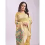 Woven Jacquard Designer Yelllow Color Linen Cotton Fabric Ceremonial Saree