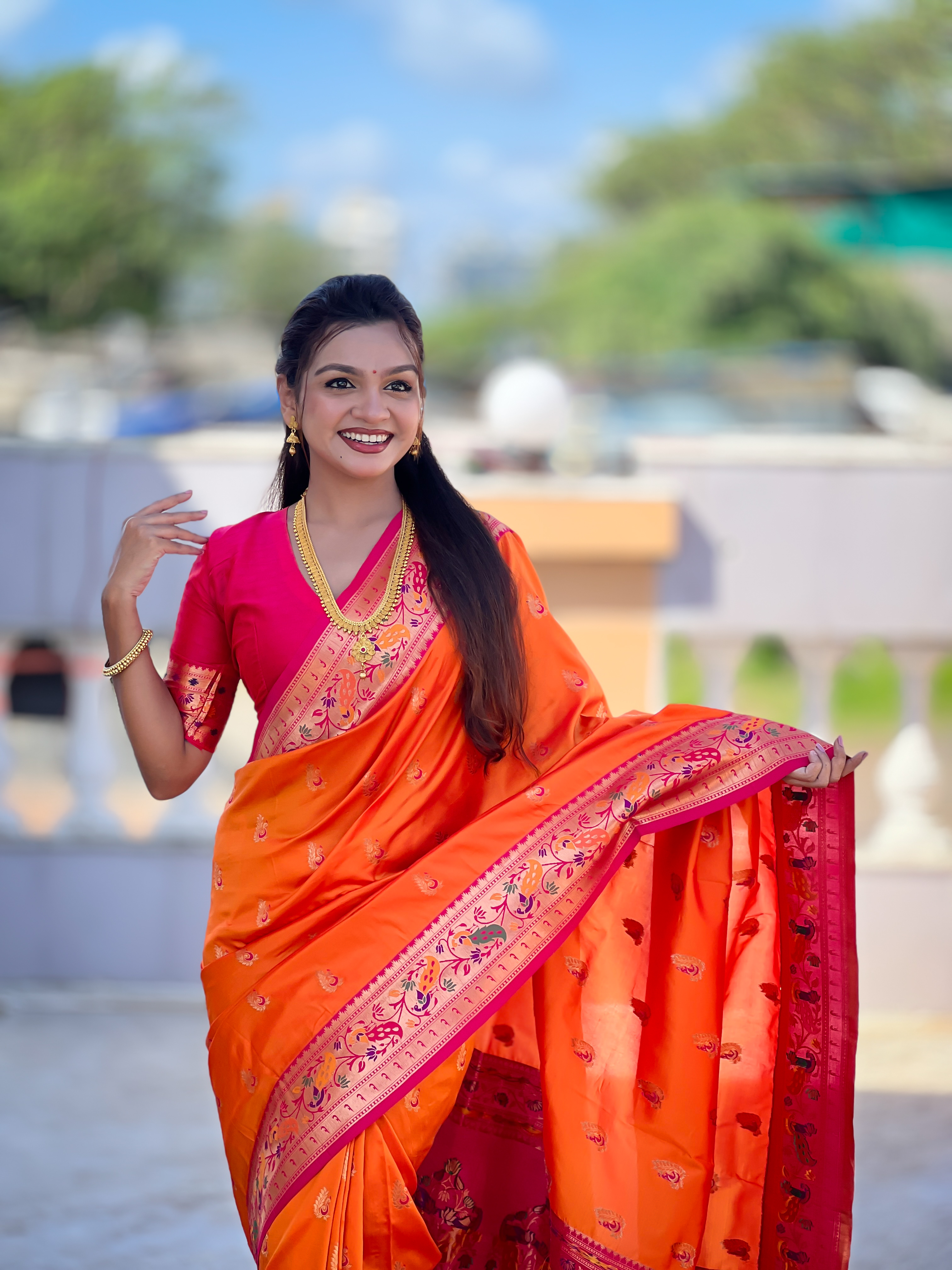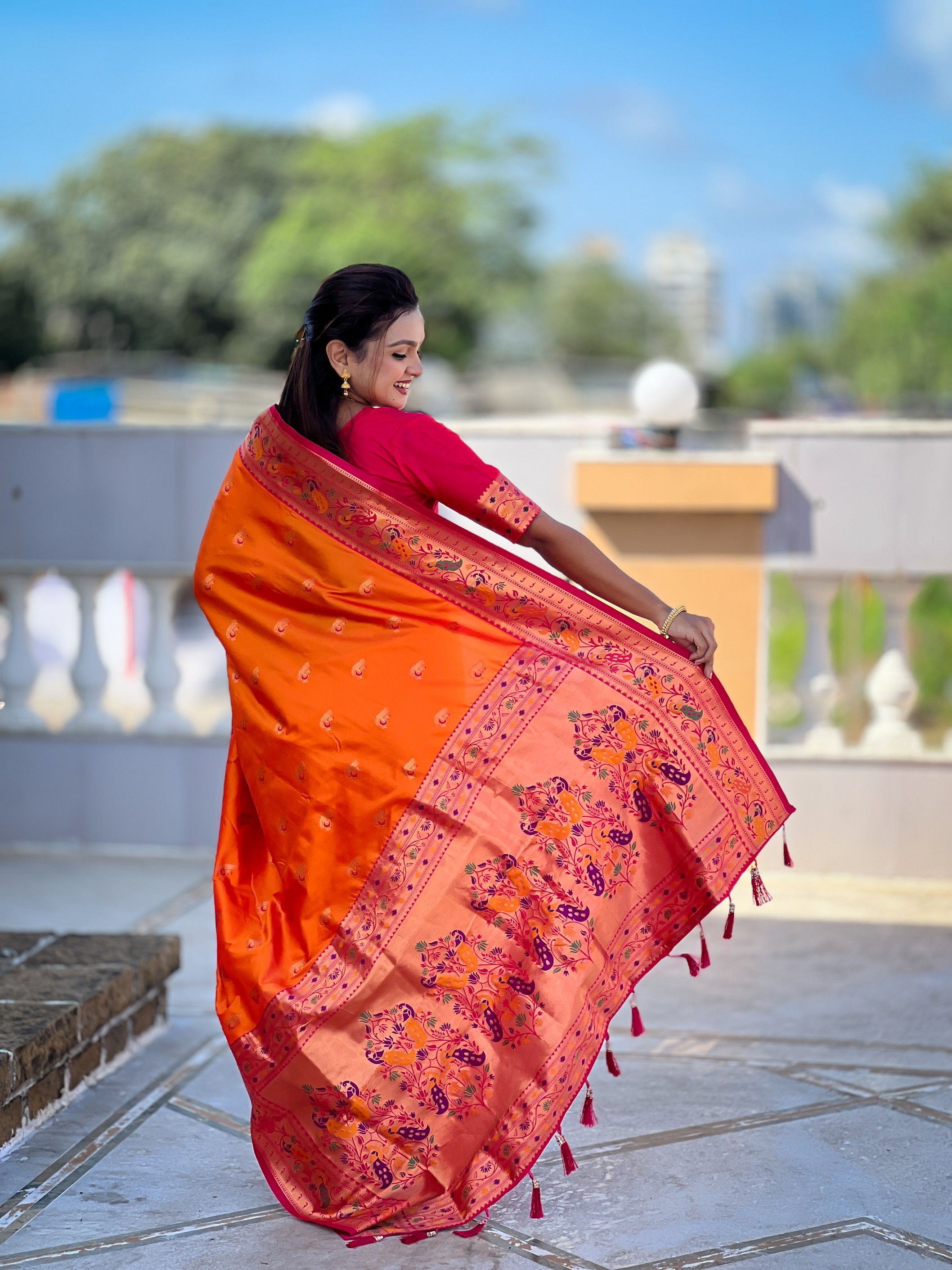 Woven Meenakari Jacquard Designer Orange Color Paithani Silk Saree
