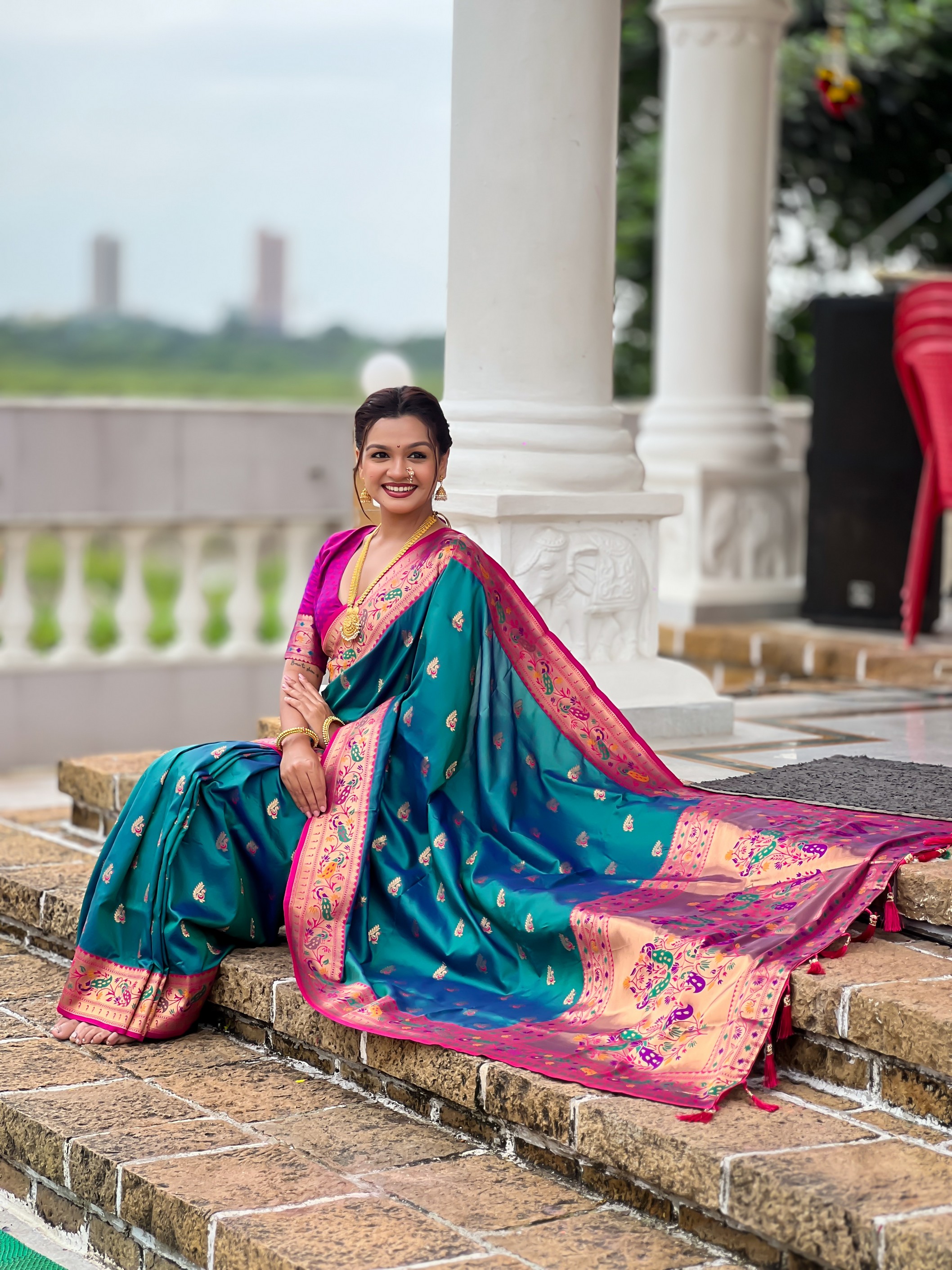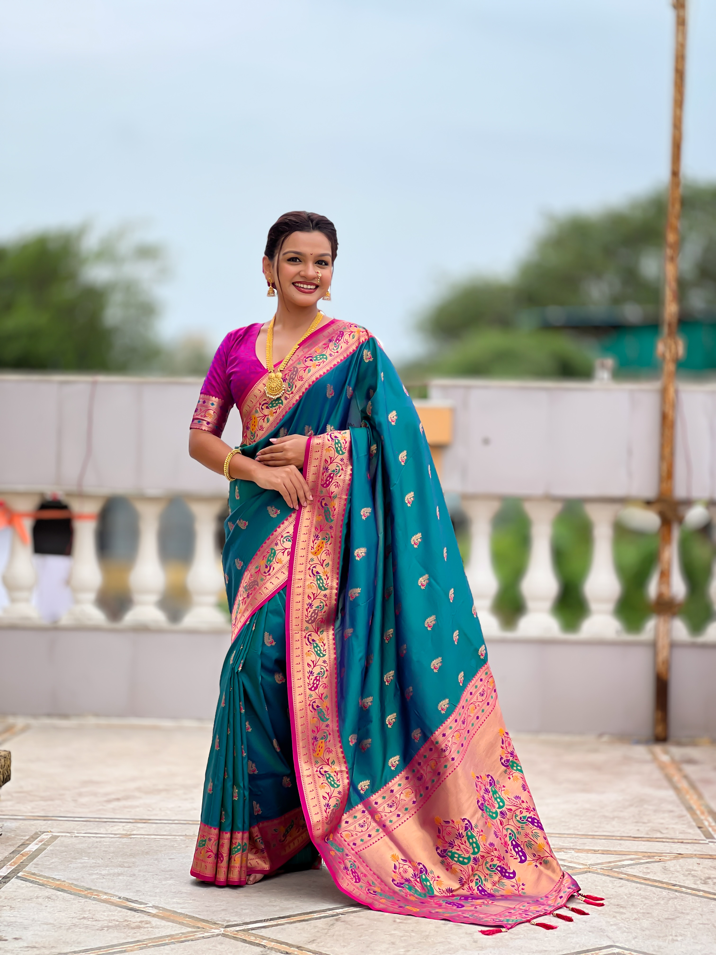 Attractive These Party Wear Saree in Fine Colored.These Saree Are Paithani Silk And Blouse is Fabricated On Paithani Silk.Its Beautified With Weaving Jacquard Meenakari Designer.