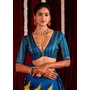 Yellow & Blue Color Ikkat Silk Fabric Designer Zig Zag Printed Traditional Party Looks Saree
