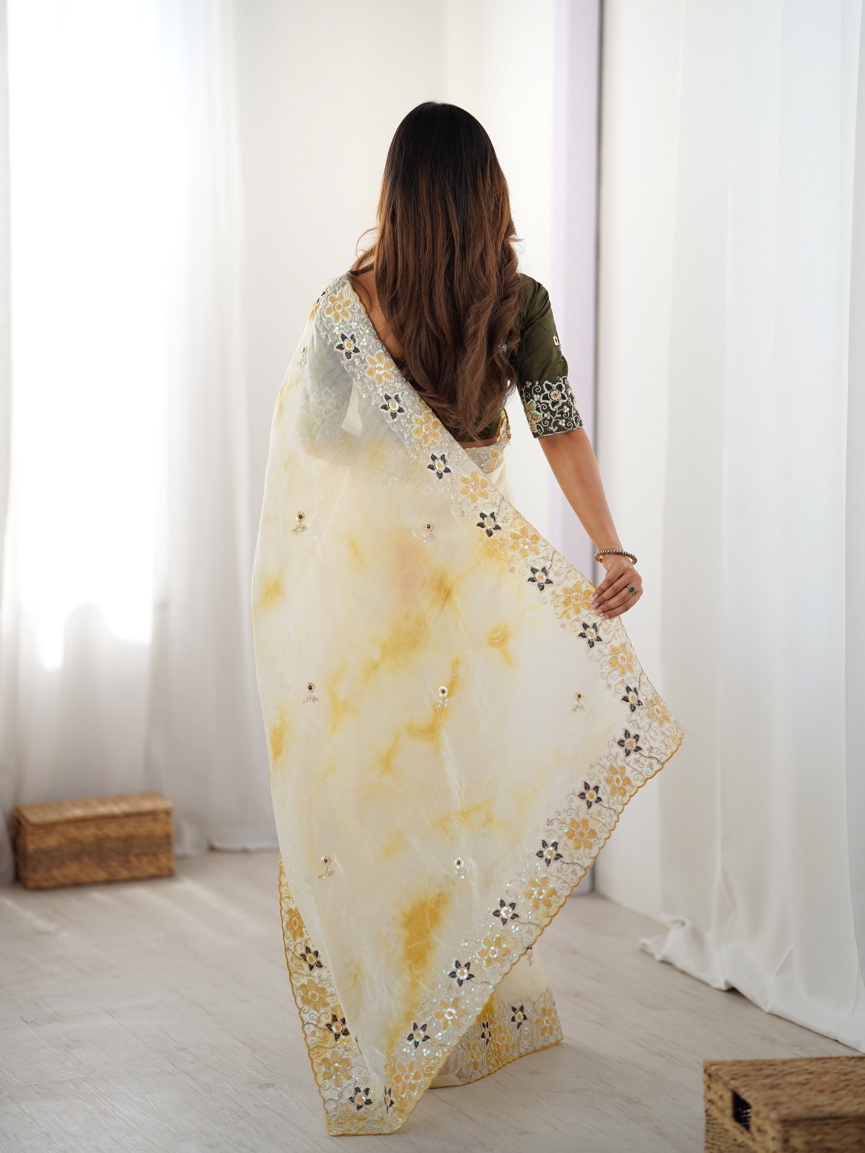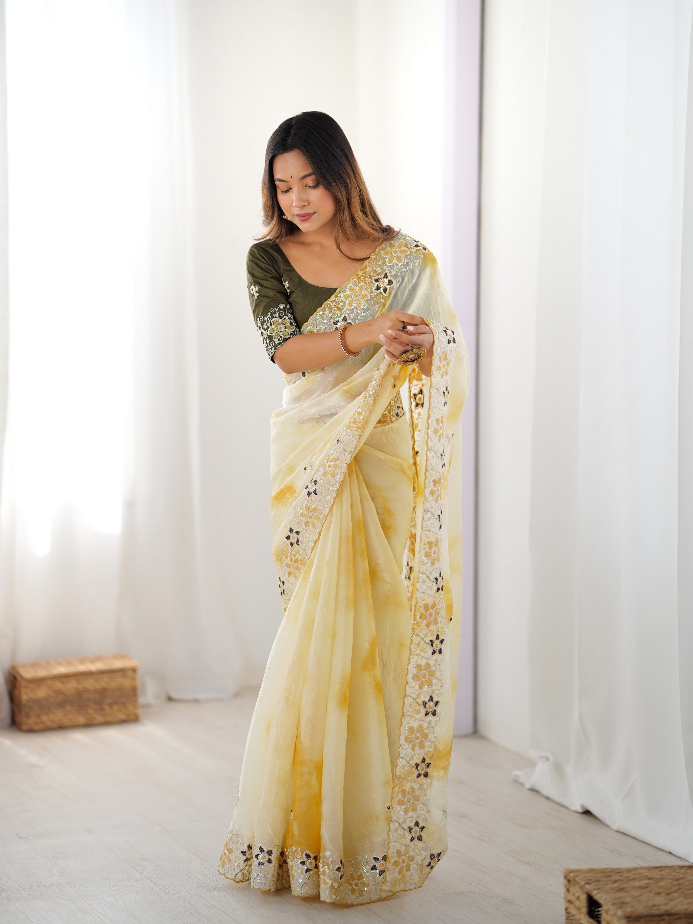 Yellow color Fendy Fabric Stylish Girlie Saree