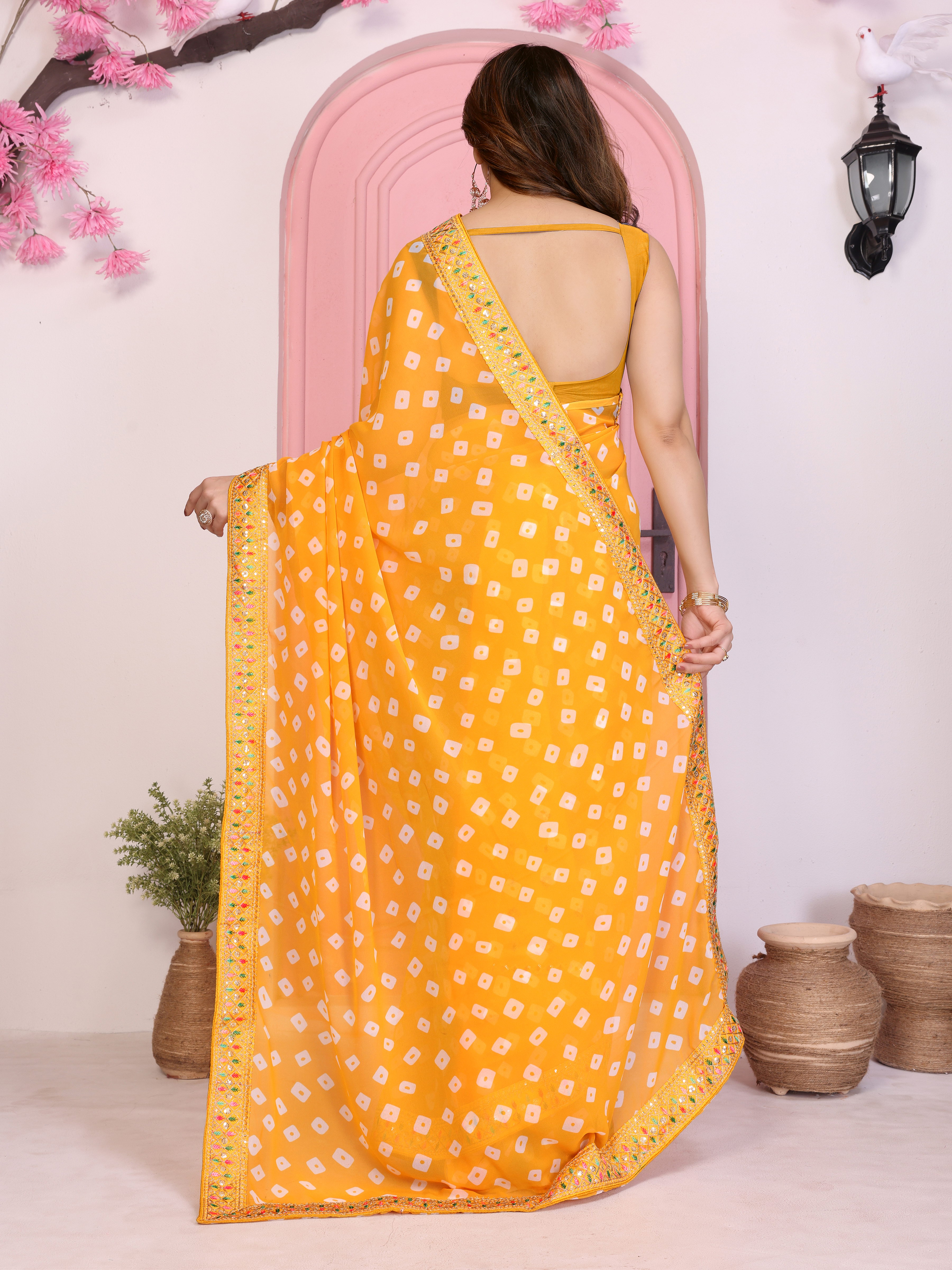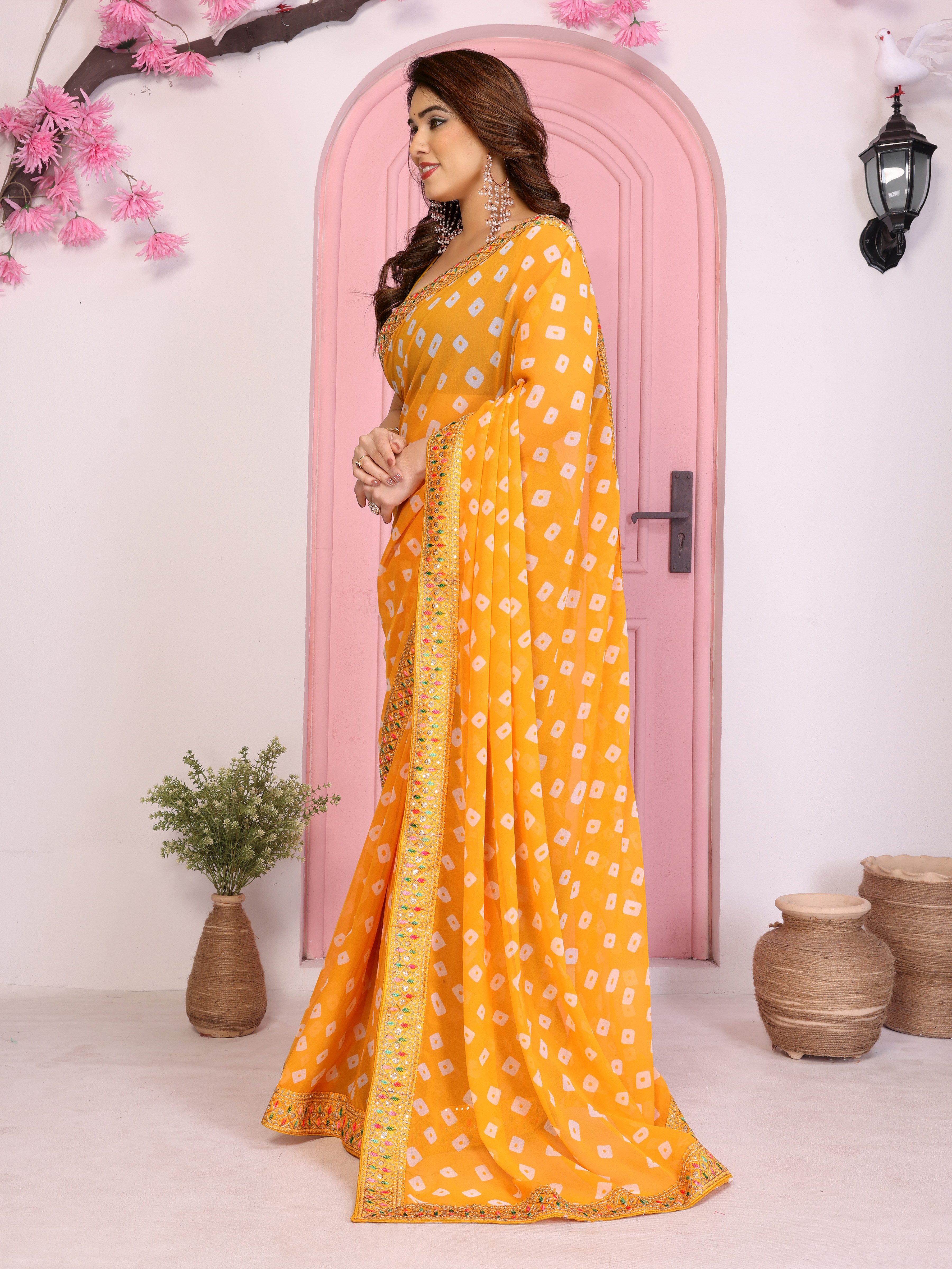 Yellow Color Georgette Fabric Embroidered Partywear Saree