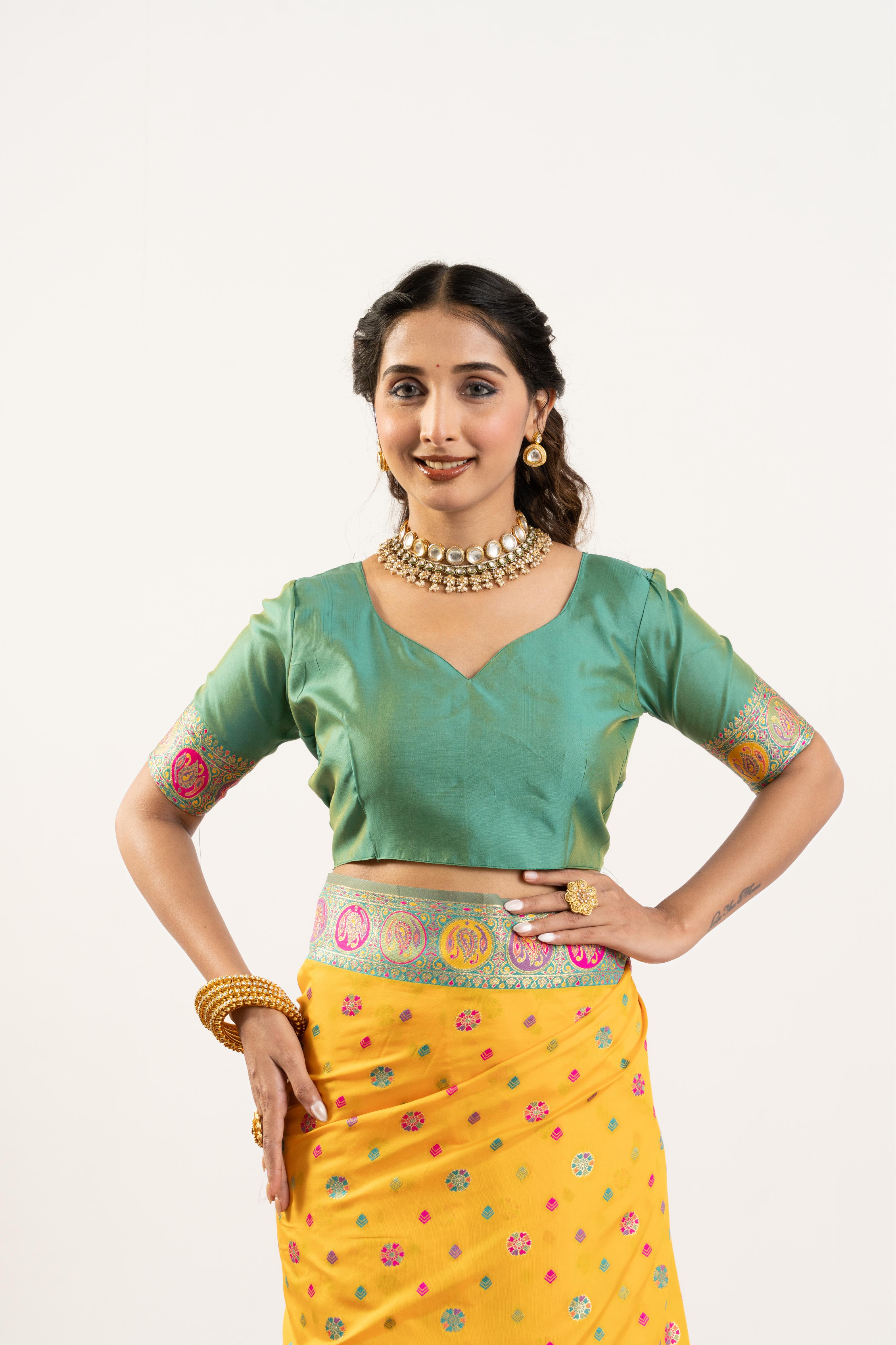 Yellow Color Woven Designer Banarasi Pashmina Silk Saree