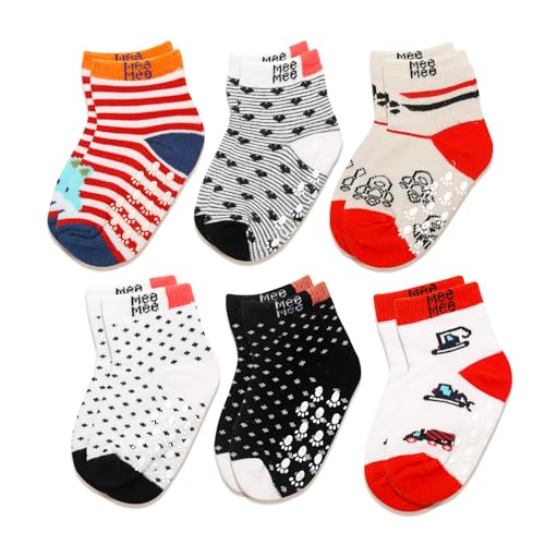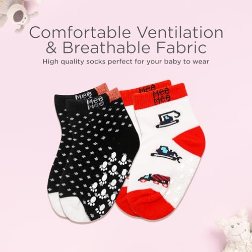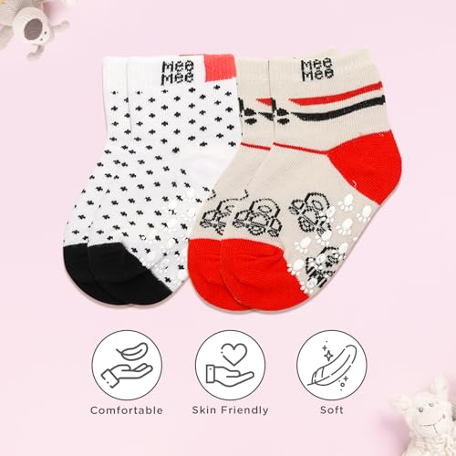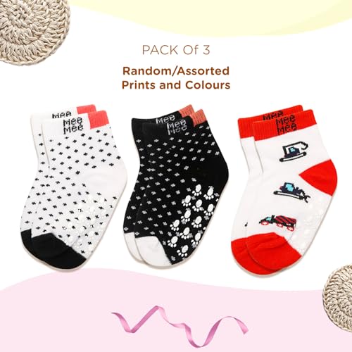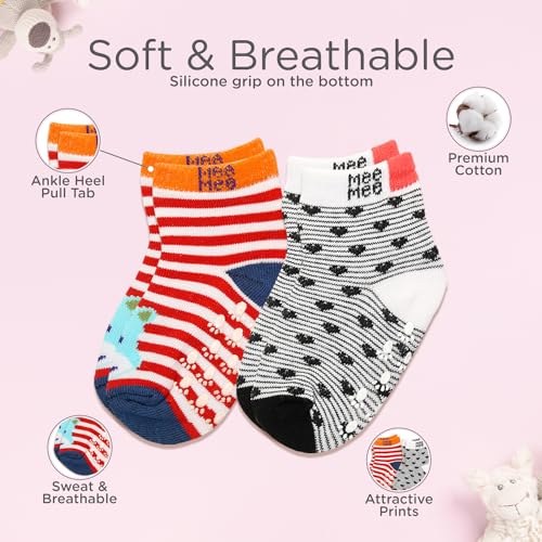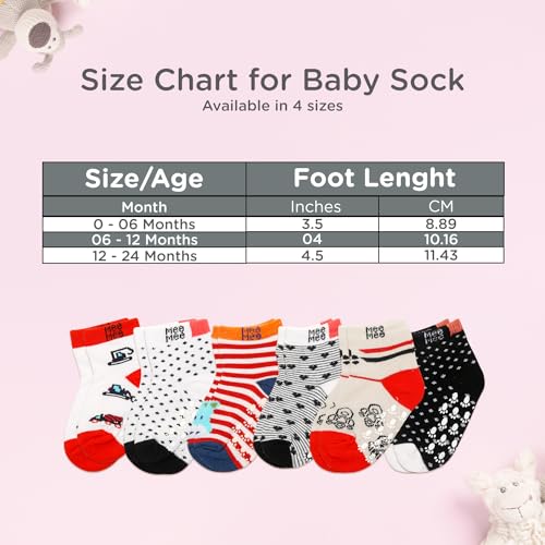 Mee Mee Cotton socks for baby | Anit - Skid, Soft, Colourful Prints For 0-6 Months (Pack of 6)