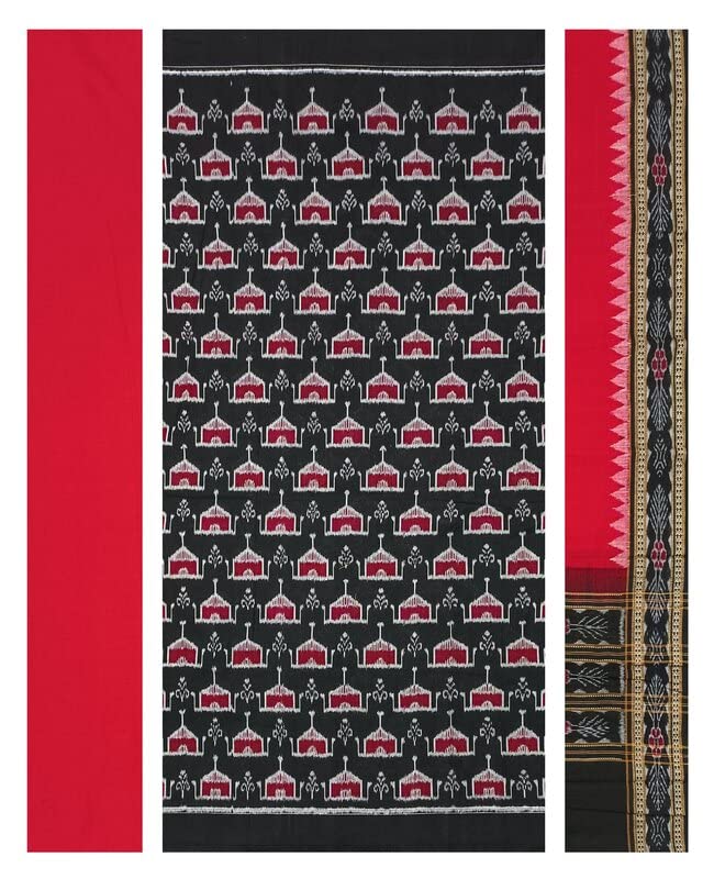 SAMBALPURI BANDHA CRAFT Sambalpuri cotton dress material set(Village hut design in black and red colors combination)