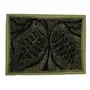 An illusion forming traditional monochromatic Madhubani painting extensively detailing the forms of two birds intimately intermingling with the tree of life which is acting like a shield as perceived by the artist. The strokes of the painting quill are very fine but distinct. These paintings are inspired by folklore. Only hand made paper cured with cow dung is utilized and is a signature livelihood of the painters of Madhubani, Bihar, India.