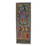 A religious traditional colourful Madhubani painting extensively detailing Lord Krishna playing the flute and dancing among the gopies and all the other beings are also reeling under His supernatural spell as perceived by the artist. The strokes of the painting quill are very fine but distinct. These paintings are inspired by folklore. Only hand made paper cured with cow dung is utilized and is a signature livelihood of the painters of Madhubani, Bihar, India.