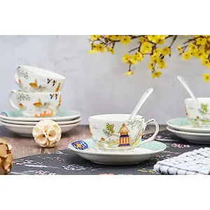 Floral Cups, Saucer & Spoons Set for...