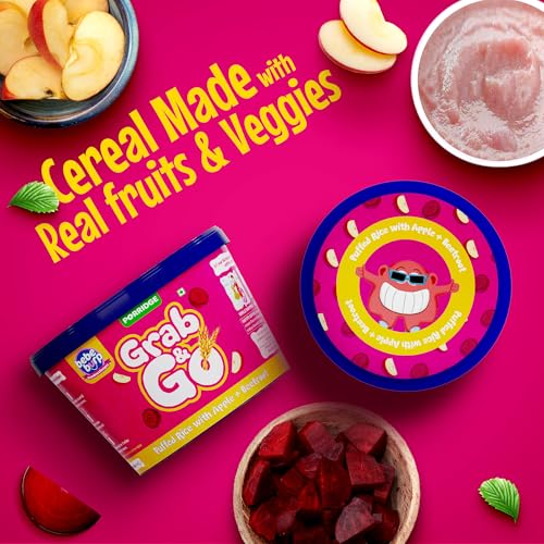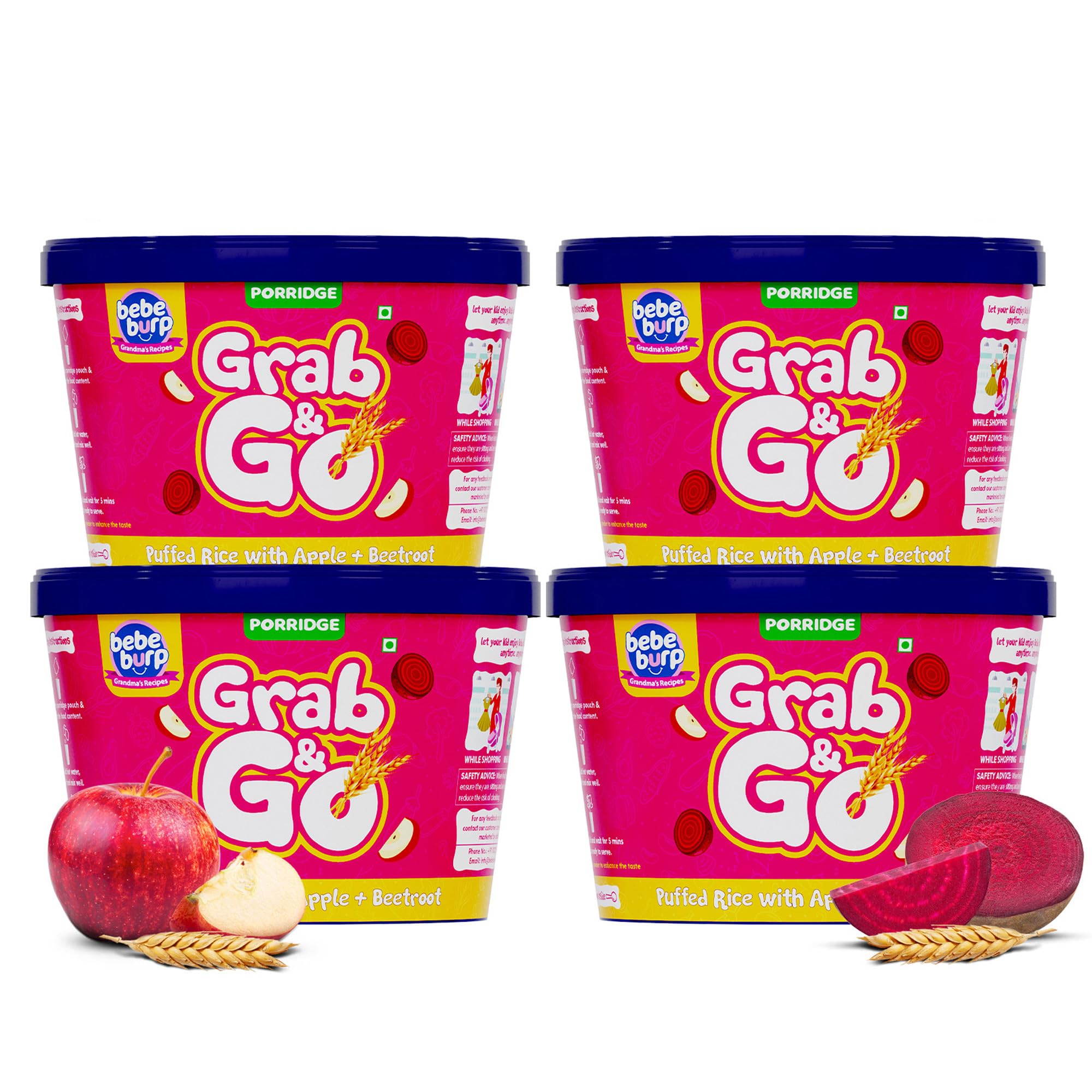BE'BE' BURP Travel pack Grab & Go - Puffed Rice Mix Porridge with Apple & Beetroot |Natural Food No Sugar No Salt | No Artificial Preservatives & Flavours | 120gm (Pack of 4)