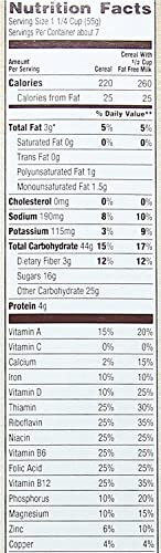 • 23g of whole grains per serving - nutritionists recommend eating 3 or more servings of whole grain foods per day (about 16g whole grains per serving or at least 48g per day)
