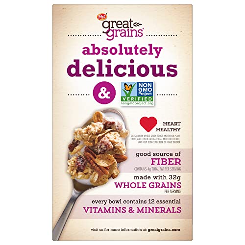 Made with sweet raisins delicious dates and crunchy pecans Great Grains raisins dates & pecans cereal is a wholesome way to start the day. Great Grains raisins dates and pecans has naturally nutritious raisins and dates wholesome pecans crispy whole grain flakes and crunchy multi-grain clusters for a taste inspired by raisin bread.