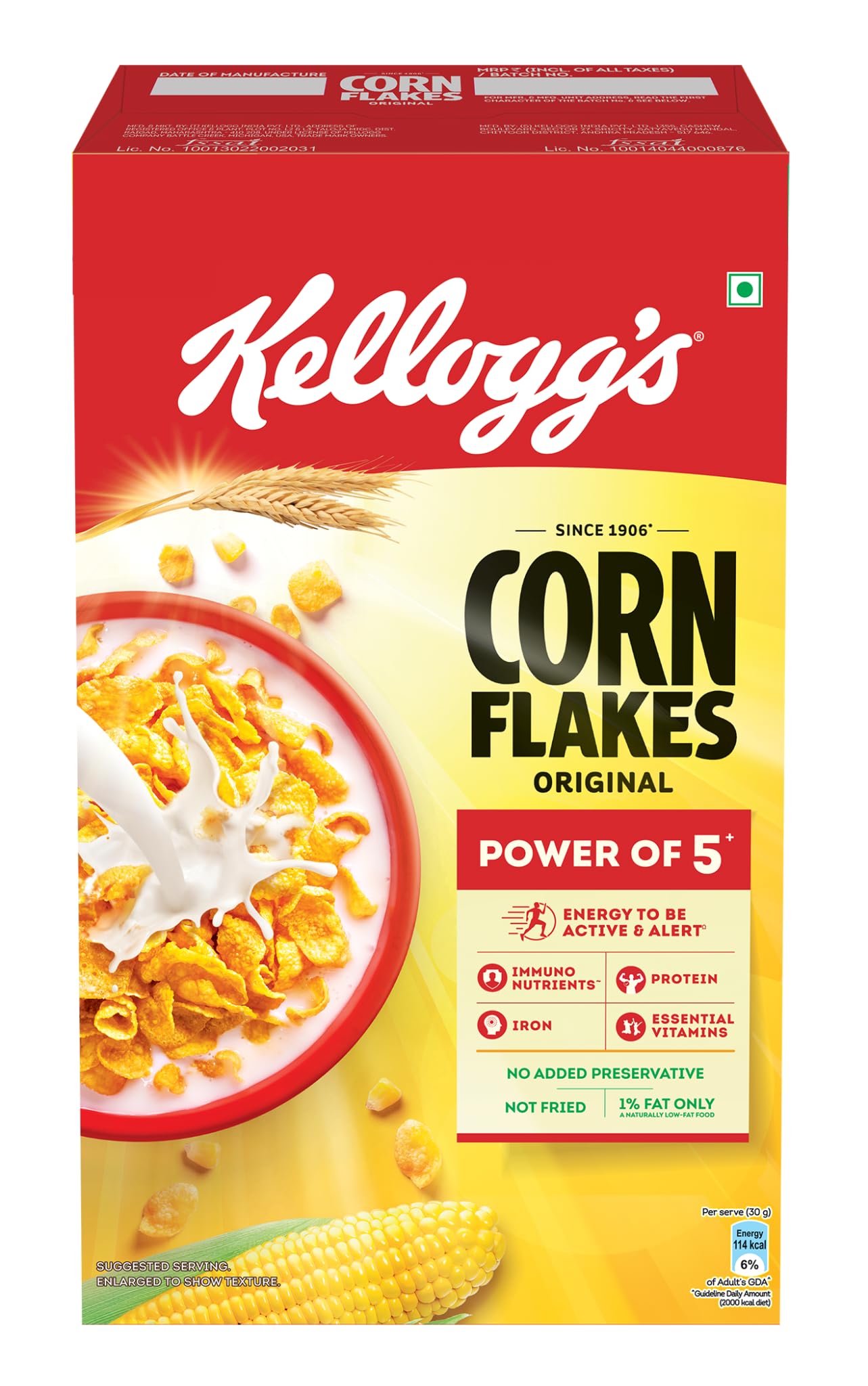 HomeGroceryHealthy BreakfastCereals & PorridgeKellogg's Corn Flakes Original 475g | Power of 5: Energy Protein Iron Calcium Vitamins B1 B2 B3 & C | Corn Flakes Breakfast Cereal | Naturally Cholestrol Free