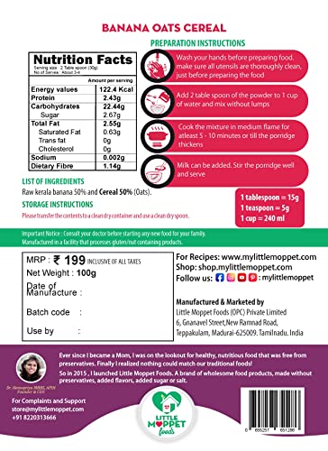 Little Moppet Foods Banana Oats Cereal (100 Gram)