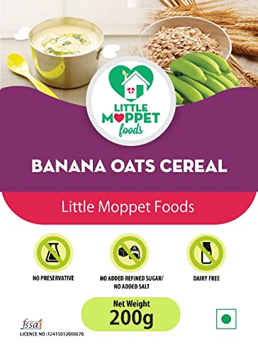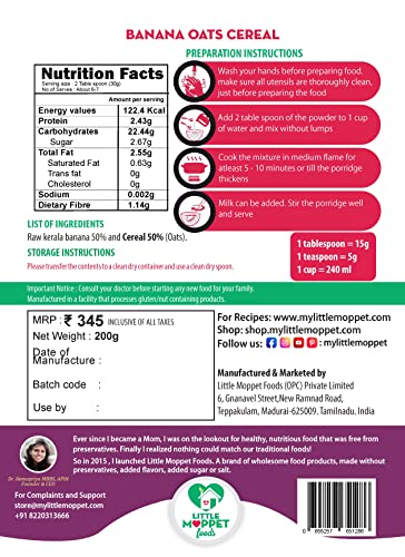 Little Moppet Foods Banana Oats Cereal – 200g | No Additives and Preservatives | Free from Added Salt and Sugar | Made with Oats and Sundried Raw Kerala Nendran Banana |