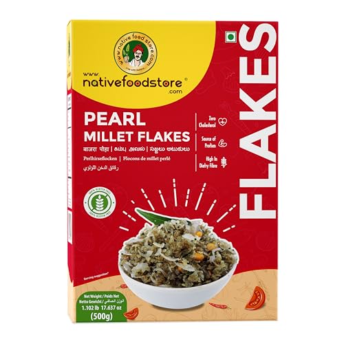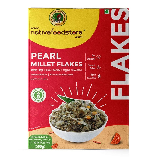 Nativefoodstore Pearl Millet Flakes is healthy and tasty. We can make Millet flakes upma Porridge Payasam Millet aval Mix and Etc. Pearl Millet Flakes are perfect for breakfast and to start your day with the necessary energy and nutrients. It is very healthy and gluten-free. Farmer's Grain cast a glow on our prestigious Pearl Millet that peacefully flashes in the province of Rajasthan Haryana Gujarat Maharashtra and Uttar Pradesh India. Our coarse grain cereals are grown to adapt to harsh and warm-season admitting the drought-tolerant properties. Farmer's Grain golden yellow colored small round cereal crop is enriched with essential nutrients and antioxidants. These cereals have the highest folic acid which helps out scheduling diets for pregnant women. It is easily digestible baby food. Our natural gluten-free millets can be used by people having a gluten allergy lessens the blood sugar level & cholesterol and fends off insomnia.