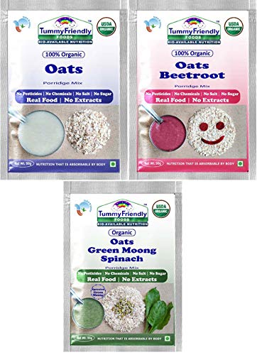 TummyFriendly Foods Certified Organic Oats Porridge Mixes Trial Packs Combo | No Sugar, No Salt, No Chemicals, No Pesticides & No GMO| Rich in Beta-Glucan, Protein & Fibre | Maximum Possible Nutrition From Real Food For Little Ones | | 3 Baby Packs, 50g E