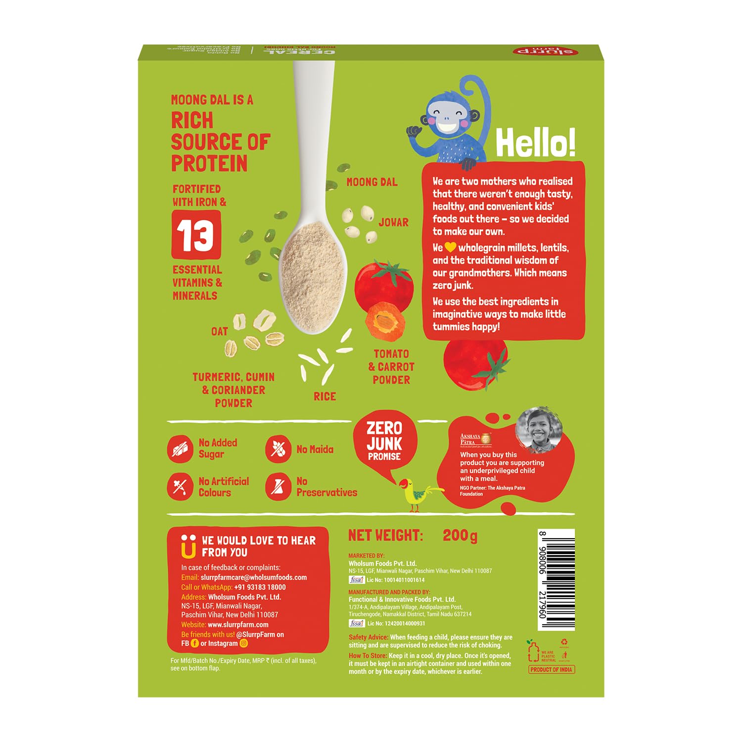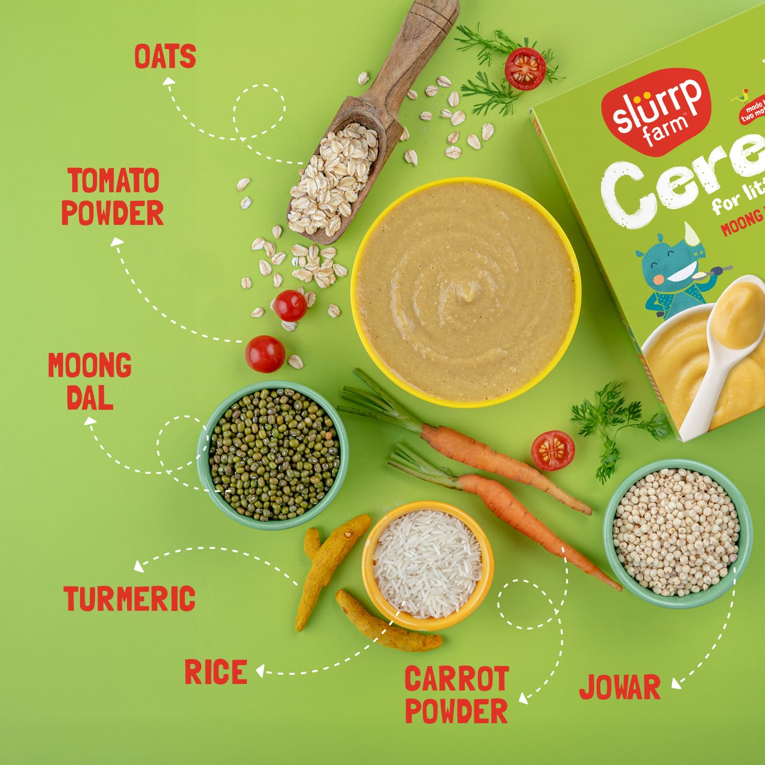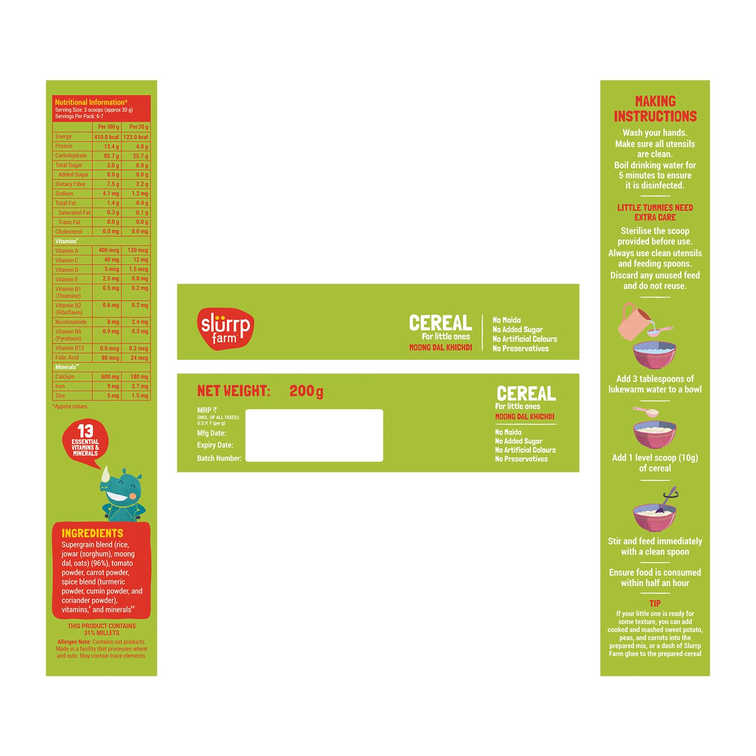 Slurrp Farm Moong Dal Khichdi Baby Cereal | Easy to Digest Travel Food for Kids | Real Veggies & 13 Nutrients | No Added Sugar, Salt or Milk | No Preservatives | 7.05 Oz (200g)