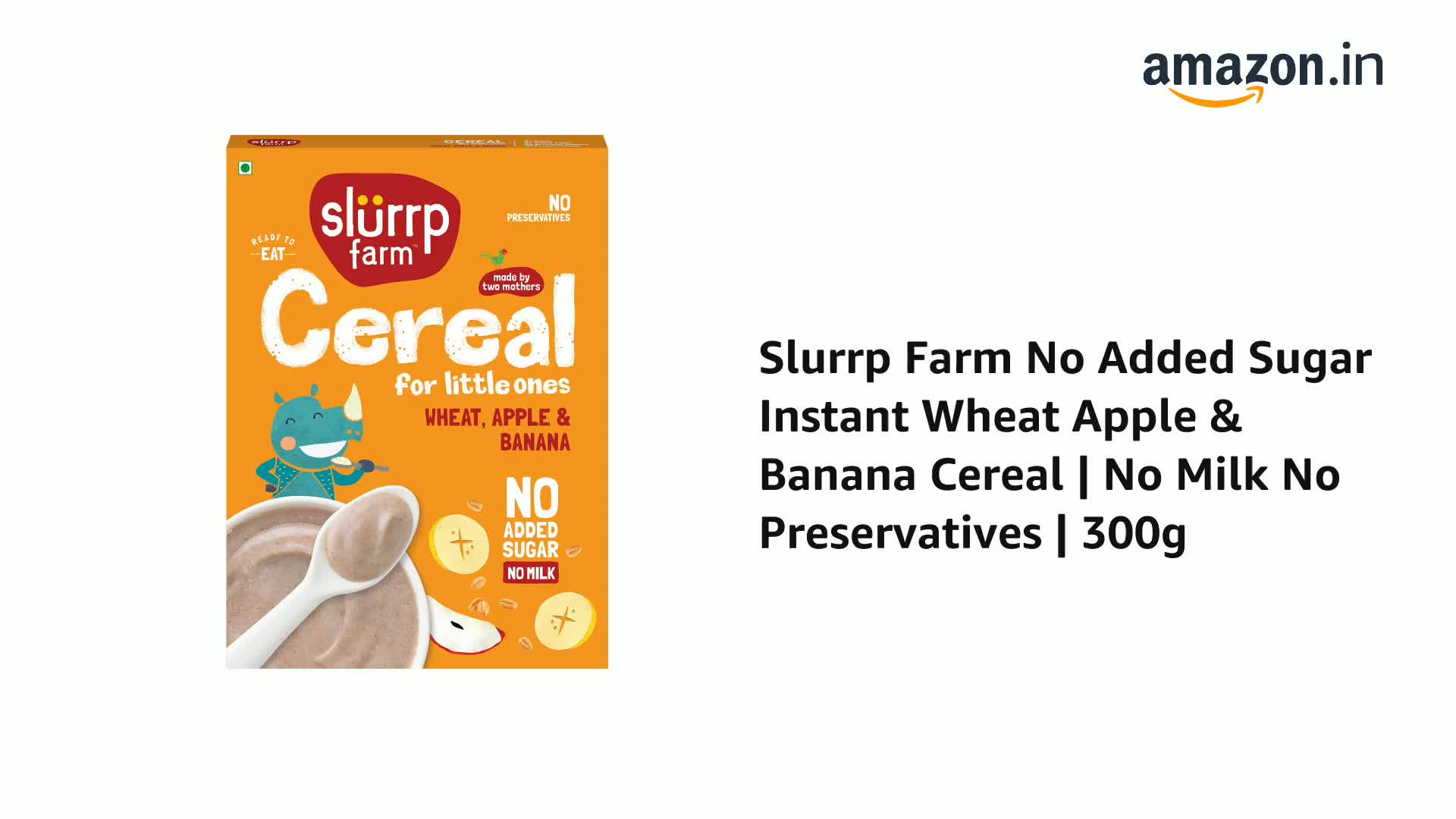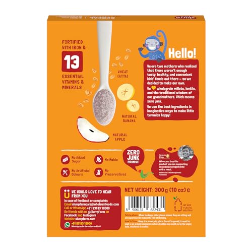 Slurrp Farm No Added Sugar Instant Wheat Apple & Banana Cereal | No Milk No Preservatives | 300g