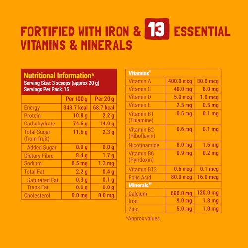 Fortified with iron and 13 essential vitamins and minerals.