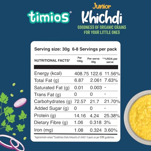 Timios Organic Porridge, Khichdi, 100% Natural Health Mix, Instant Healthy Wholesome Food, Rich In Protein, No Added Sugar, No Salt, 200g
