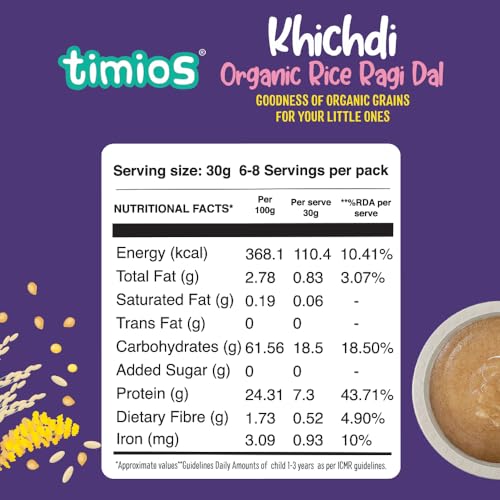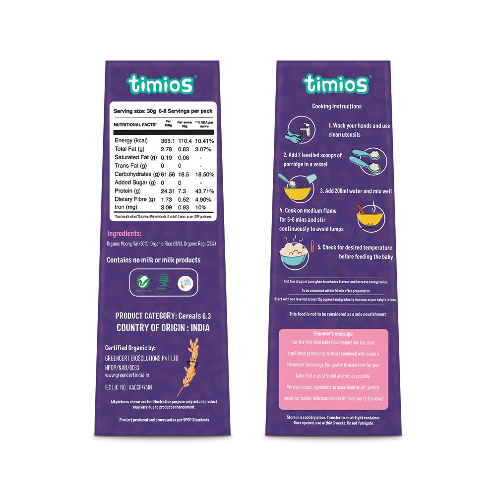 Organic Rice Ragi and Dal is made using a cleanroom technology that provides the cleanest environment by controlling air and temperature which in turn controls all the airborne pollutants like dust and microbes. Organic Ragi is sprouted and carefully roasted in an even temperature along with organic Rice and Dal that is appropriate to the baby's age and is easily digestible. It has no added sugar salt and preservatives. It can also be used with a drop of ghee to enhance flavor and nutrition.