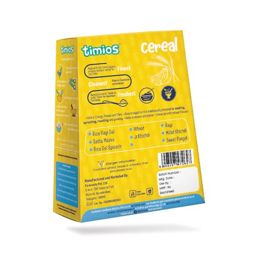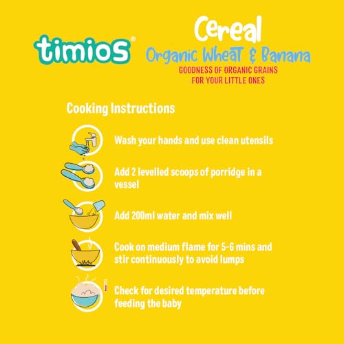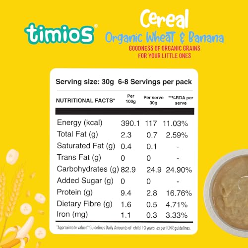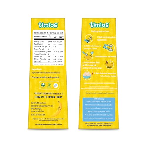 Organic Wheat & Banana is made using a cleanroom technology that provides the cleanest environment by controlling air and temperature which in turn controls all the airborne pollutants like dust and microbes. Organic Wheat is first sprouted and is carefully roasted in even temperature and enough dehydrated banana powder to give the right flavor and nutrition to the baby that can easily be digested. It has no added sugar salt and preservatives. It can also be used with a drop of ghee to enhance flavor and nutrition.