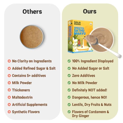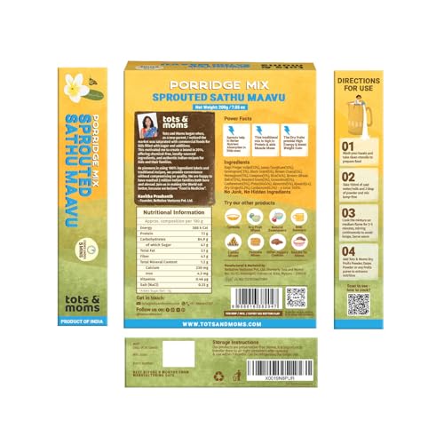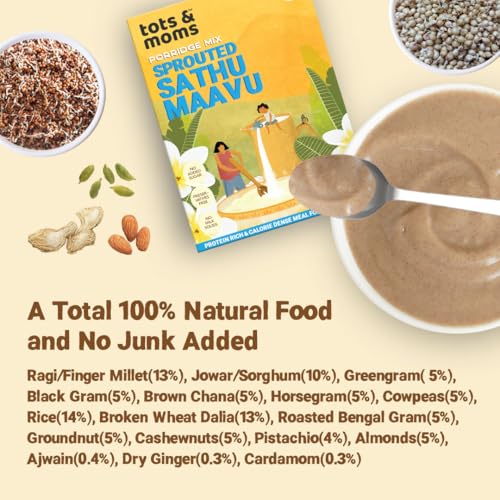 Sprouted Sathu Mavu is a multigrain health mix made with sprouted and ground grains cereals seeds nuts and many more wholesome native ingredients that enrich it with the goodness of iron protein calcium and fiber. Sprouting enhances nutritional value and acts as an immunity booster complimenting the all round physical and mental growth of your kids. It is thick creamy and easily digestible suitable for people of all ages to be enjoyed as a porridge.