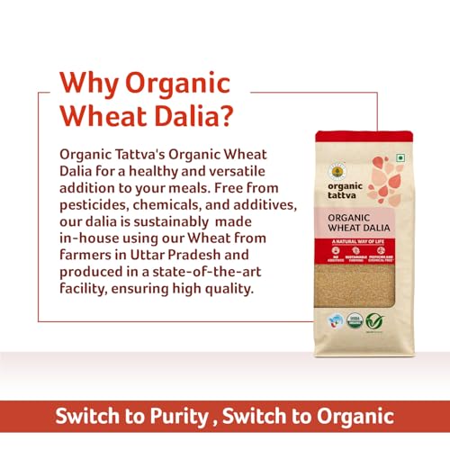 • Organic Tattva's Wheat Dalia is not just high in fiber but also free from any additional coloring or chemical enameling making it the best fiber source for diabetics and the fitness conscious