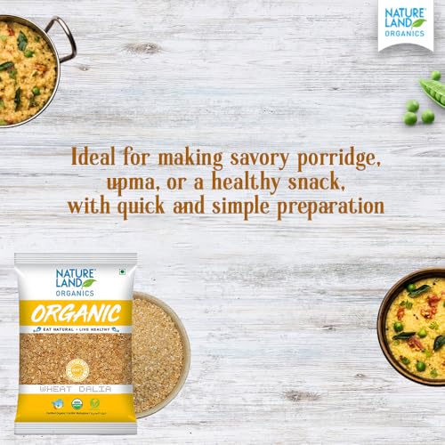 Wheat Dalia is high in protein and low in fat and calories it offers you nutrients without adding pounds to your body. Natureland Organic foods wheat porridge/Dalia/broken wheat is processed from premium grade of wheat which is pounded coarsely using hammer method where it is only pounded and not grinded to ensure fine and even granules. This Dalia is packed with nutrients fiber and manganese and has a natural taste flavor and aroma.