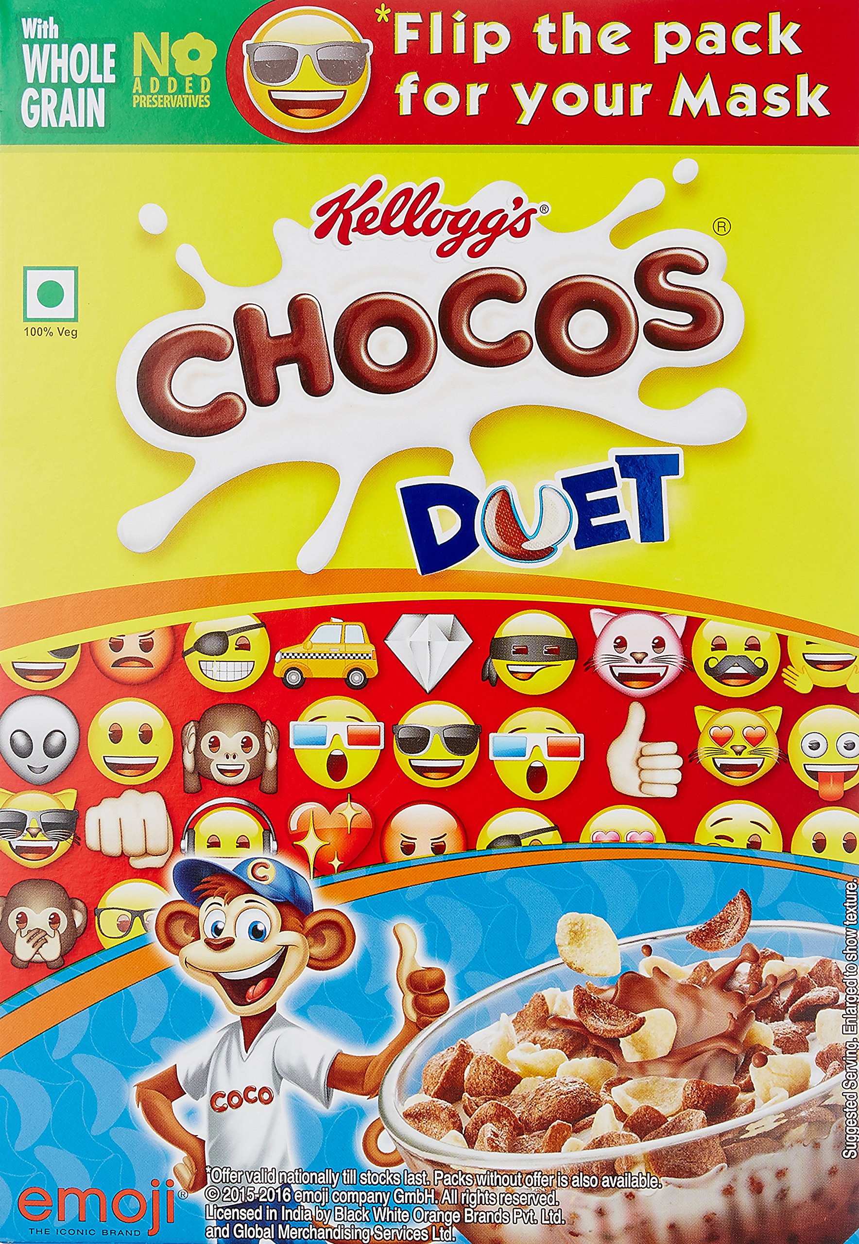 It is a duet of taste and fun when vanilla and chocos mix to make a double delight called Kellogg's chocos duet. Made with whole grain. This tasty breakfast is loved by kids. Now school mornings are double the fun with Kellogg's chocos duet.