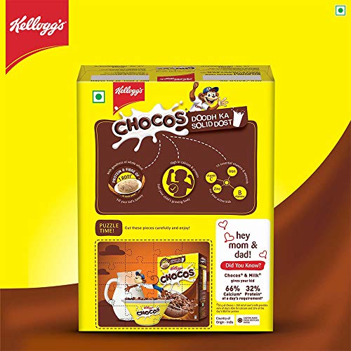 Kellogg's Chocos is a Solid & Nourishing food for your kids. One serve of 30g of Kellogg's Chocos has the protein & fiber of 1 Wheat Roti of 30g. It is enriched with 10 essential vitamins and minerals.