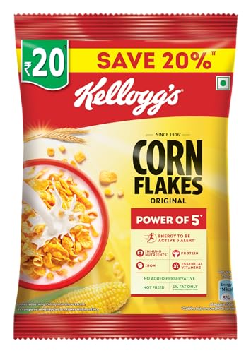 Kellogg's corn flakes cereal is a nourishing and wholesome breakfast at its very best. It is prepared from actual natural corn with iron and 8 essential vitamins containing a c and B-group vitamins it provides the balanced combination of nourishment and original corn flavour. It is a convenient breakfast option that gives energy even after 3 hours. Every bite of these crispy golden flakes is just as delicious as the first. You'll be on your way to a great day when you pour Kellogg's corn flakes cereal into your breakfast bowl.