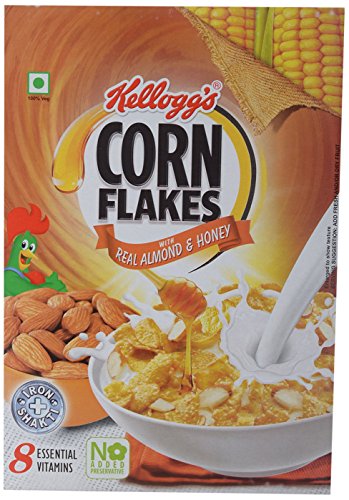 Kelloggcorn flakes with real almond and honey is a tasty and nourishing way to start the day. It brings to life the age-old family secret of having the goodness of almond and honey every morning. The fabulous taste and goodness of both almonds and honey combined with the nourishing goodness of corn flakes make for a great start every morning. Golden flakes of corn coated with real honey and with rich almond slices tossed in it is a combination that makes for a delicious delight. It has the goodness of real corn and is fortified with iron and 8 essential vitamins including A C and B-group vitamins.