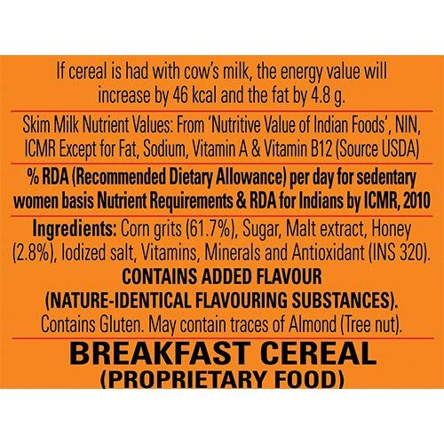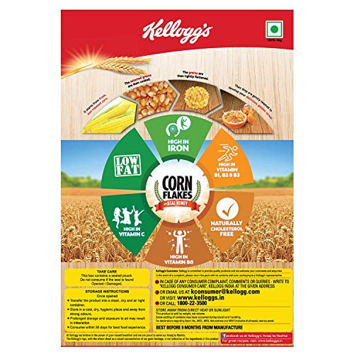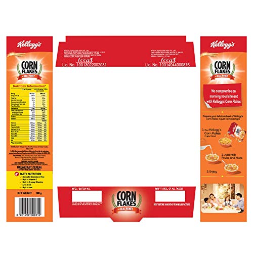 Kellogg's Corn Flakes with Real Almond is a tasty nourishing and wholesome breakfast at its very best. The goodness of almond inclusions with real honey can be tasted in every bite. Kellogg's Corn Flakes cereal is a nourishing and wholesome breakfast at its very best. It is prepared from actual natural corn with iron and 8 essential vitamins containing A C and B-Group vitamins it provides a balanced combination of nourishment.
