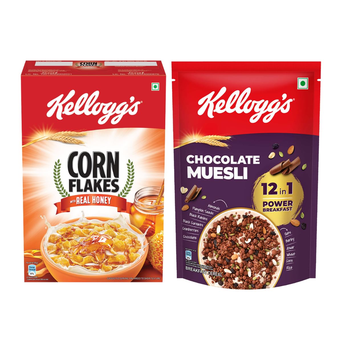 Kellogg's Cornflakes with Real Honey 300g and Kellogg's Chocolate Muesli 450g