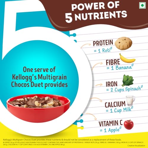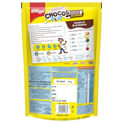 HomeGroceryHealthy BreakfastFlakesKellogg's Multigrain Chocos Duet 375g | Source of Calcium High in Protein with 10 Essential Vitamins & Minerals Source of Fibre | Breakfast Cereal for Kids