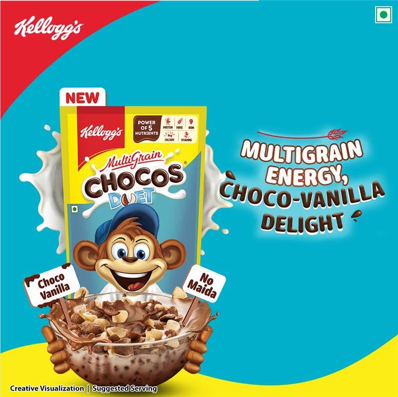 Ita duet of taste and fun when vanilla and chocos mix to make a double delight called kelloggchocos duet. Made with whole grain this tasty breakfast is loved by kids. Now school mornings are double the fun with kelloggchocos duet.