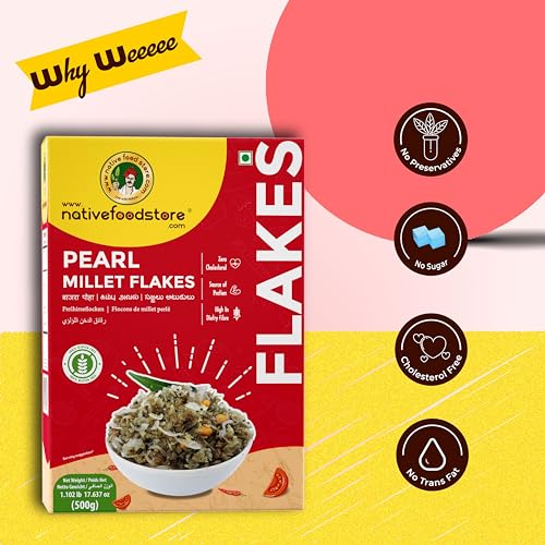 Premium-quality pearl millet flakes packed with essential nutrients including fiber vitamins and minerals.