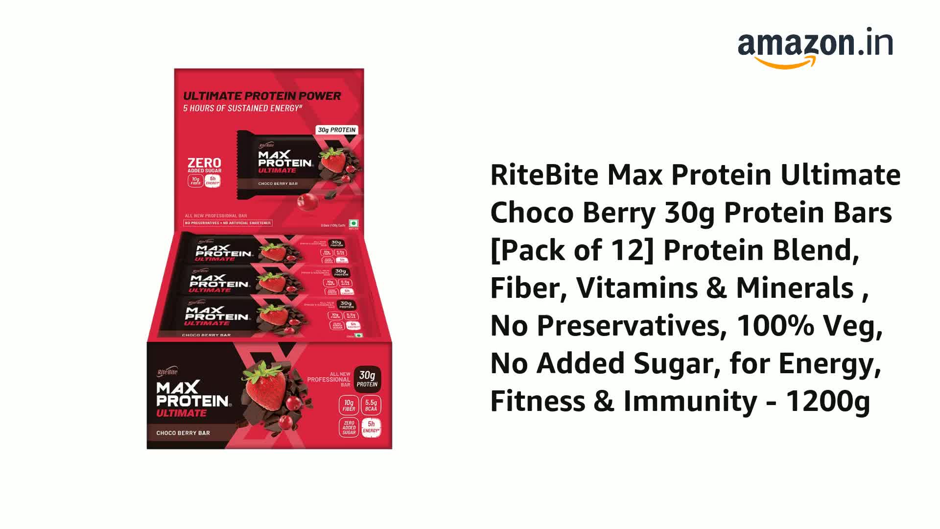 Make your workouts unstoppable with Max Protein Ultimate Choco Berry bar. It is the perfect workout fuel that keeps you energized throughout your routine. Made with the blend of whey and soy protein this bar helps you elevate your everyday performance when you work out. And to top it off it even helps in repairing your muscles so you swiftly blaze through every session.