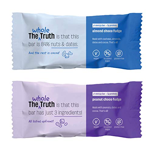 HomeGroceryHealthy BreakfastHealth BarThe Whole Truth - Energy Bars | Nuts For You (4 Peanut Choco Fudge 2 Almond Choco Fudge) | Pack of 6 x 40g | Dairy Free & Sugarfree | No Preservatives | All Natural | Healthy Snack
