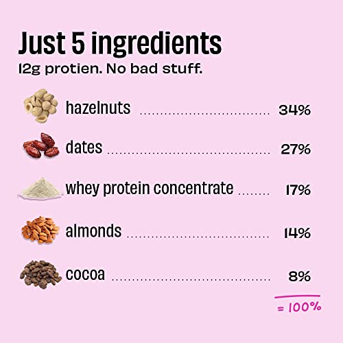 • Made with Cocoa Hazelnut Dates Almonds Whey and thats All!