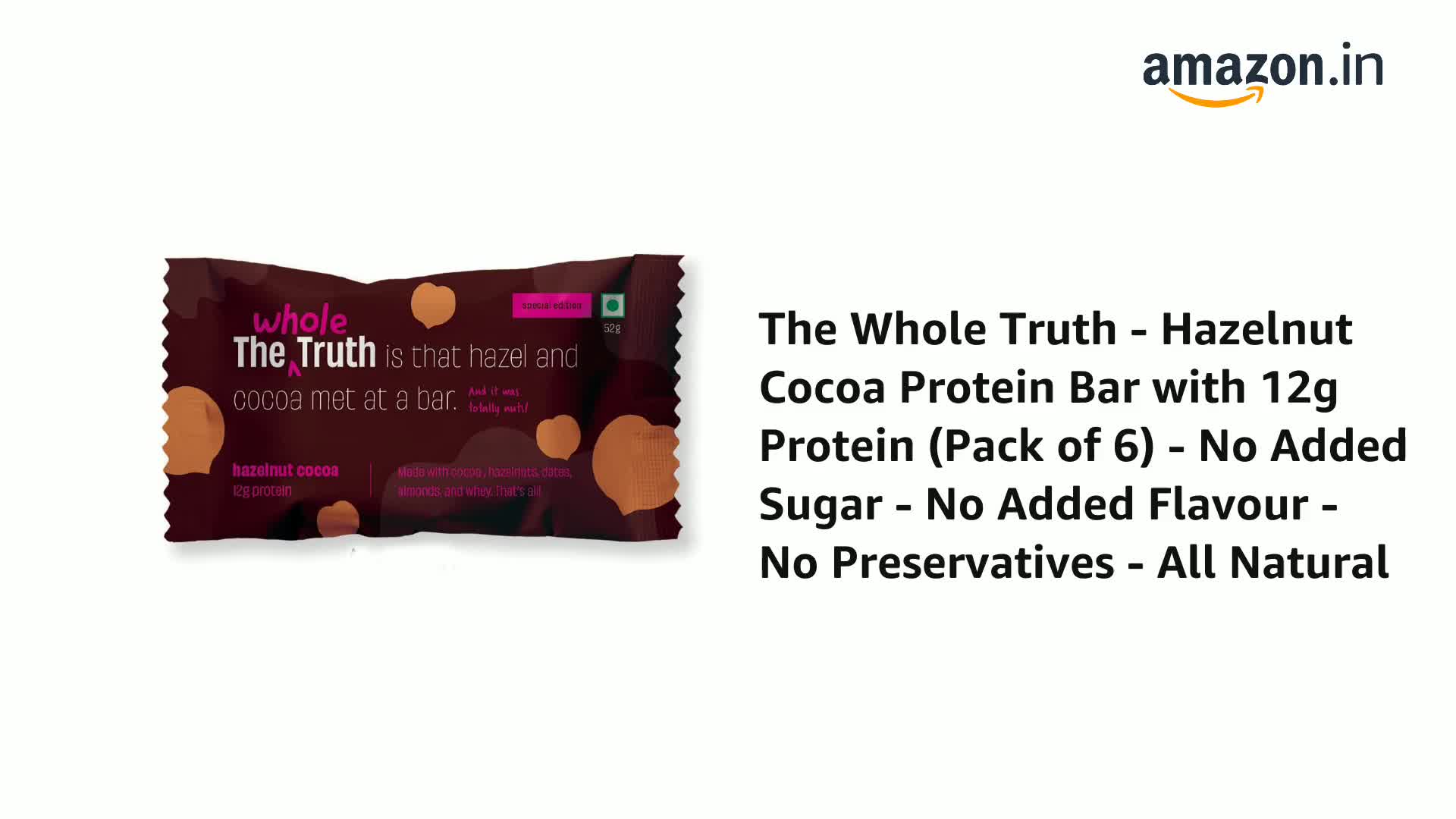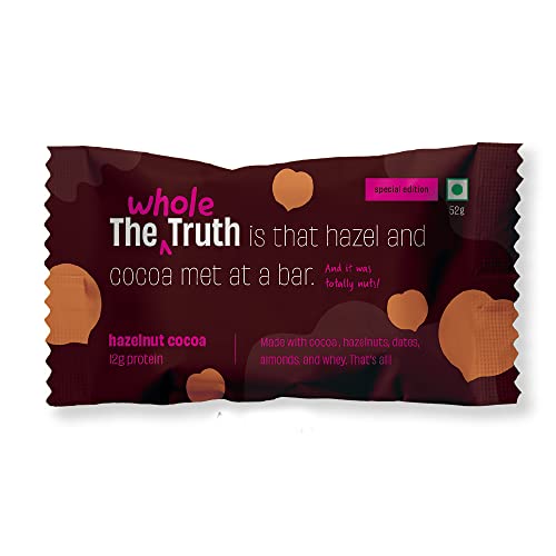 The Whole Truth - Hazelnut Cocoa Protein Bar with 12g Protein (Pack of 6) - No Added Sugar - No Added Flavour - No Preservatives - All Natural