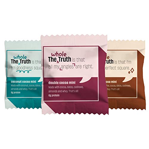 The Whole Truth - Mini Protein Bars | The Chocolate Party (3 Double Cocoa Mini Bars 3 Coconut Cocoa Mini Bars 2 Coffee Cocoa Mini Bars) | Pack of 8 x 27g each | Sugar free | No Preservatives | All Natural