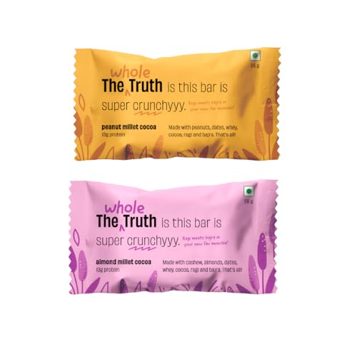 HomeGroceryHealthy BreakfastHealth BarThe Whole Truth - Protein Bars 13G | Assorted Millet Protein Bar (3 Almond Millet Cocoa 3 Peanut Millet Cocoa) I Pack of 6 x 55g | No Refined Sugar | No Added Flavours | No Preservatives | All Natural Ingredients