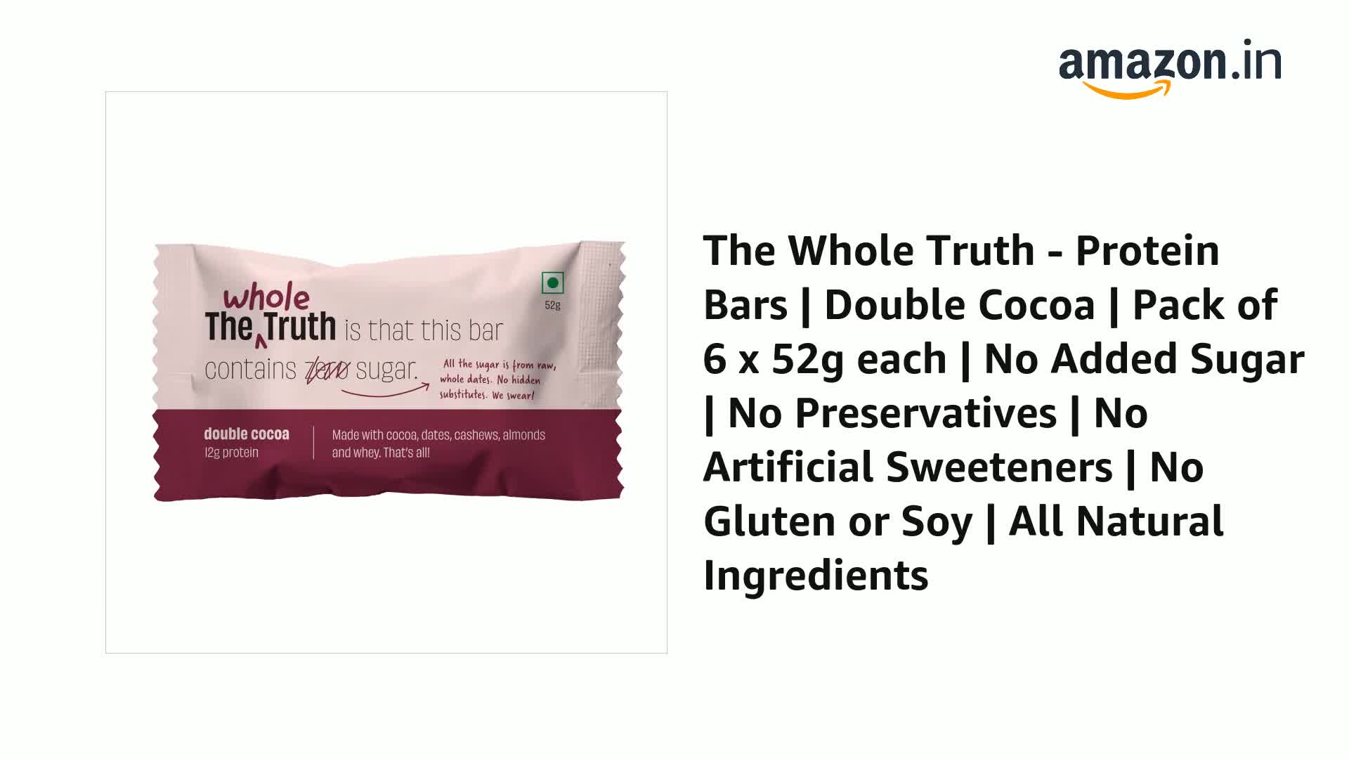 HomeGroceryHealthy BreakfastHealth BarThe Whole Truth - Protein Bars | Double Cocoa | Pack of 6 x 52g each | No Added Sugar | No Preservatives | No Artificial Sweeteners | No Gluten or Soy | All Natural Ingredients