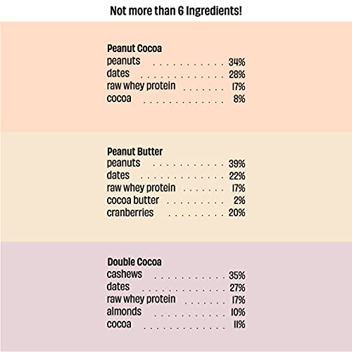 The Whole Truth - Protein Bars | Peanut Heavy (2 Double Cocoa Bars 2 Peanut Cocoa Bars 2 Peanut Butter Bars) | Pack of 6 x 52g each | Sugarfree | No Preservatives | No Gluten or Soy | All Natural