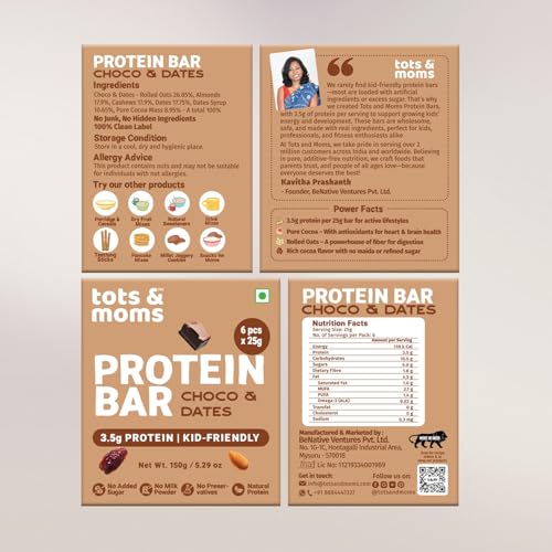 The Protein Bar - Dates & Nuts Bar is a wholesome nutrient-packed snack designed for both kids and adults. Made with simple natural ingredients like dates rolled oats almonds and cashews this bar is a perfect blend of taste and nutrition. It’s free from artificial additives refined sugar and jaggery making it a healthier choice for your little ones and the entire family. With 3.5g of protein per 25g bar it’s a great way to fuel your day or keep your kids energized on the go.